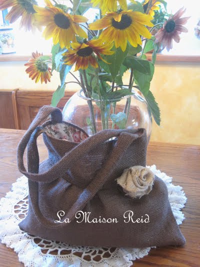 That's one classy bag!!! I love the shape. The flower co-ordinates beautifully with the brown burlap. (We call it hessian in Australia.) I would love for you to share this (and any other bags) at my ongoing linky that's exclusively for bags and totes...